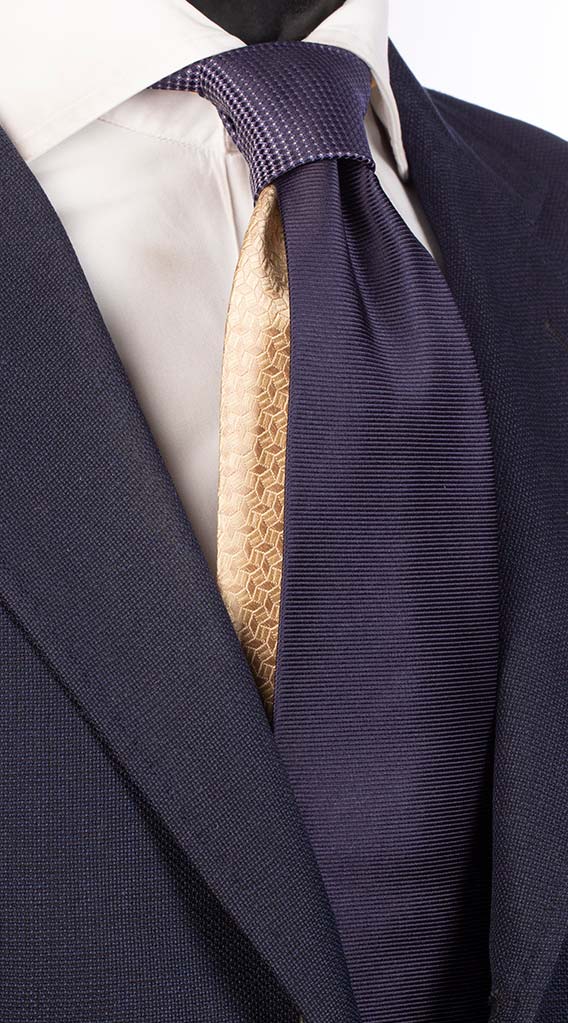 Cravatta Blu Riga Orizzontale Tono Su Tono Nodo Blu Micro Fantasia Viola Bianca N634