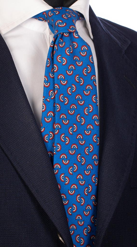 Cravatta di Cotone Bluette Fantasia Rossa Bianca 3884