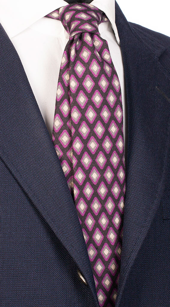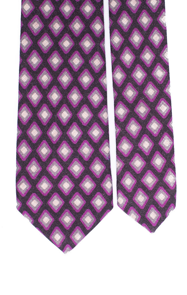 Cravatta di Lana Grigio Scuro con Fantasia a Rombi Viola Grigia L334