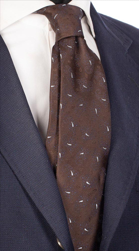 Cravatta di Seta Marrone Effetto Cangiante Paisley Bluette Celeste AN147