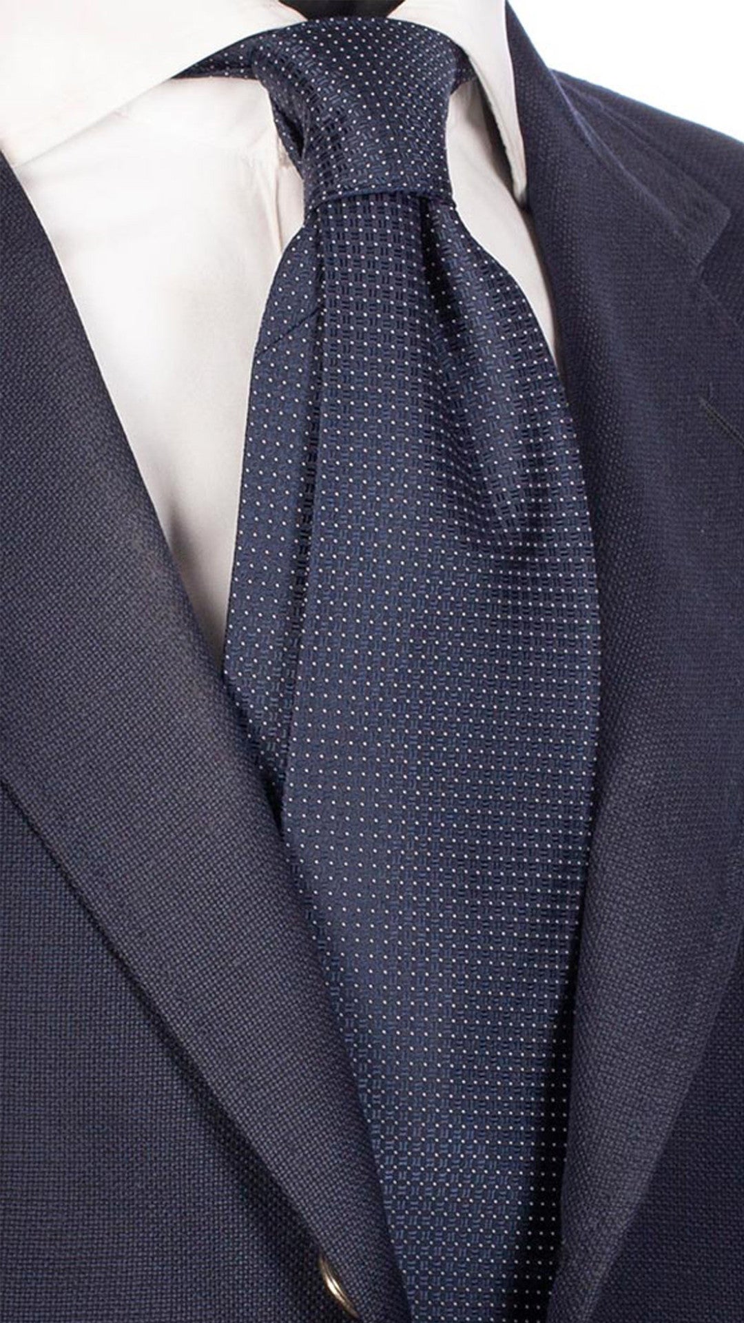 Cravatta da Cerimonia di Seta Blu Fantasia Tono su Tono Bianco CY5068