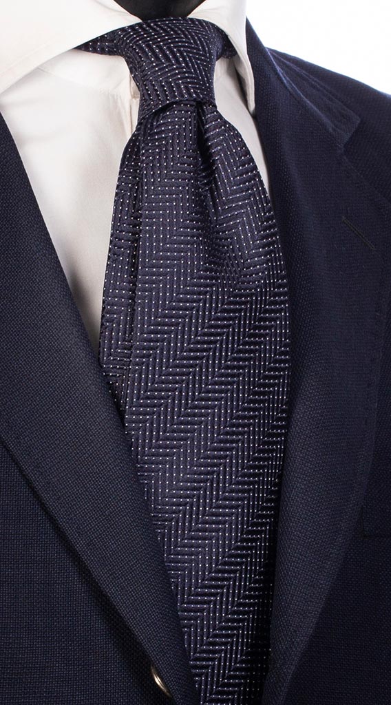 Cravatta da Cerimonia di Seta Blu Lisca di Pesce Tono su Tono Bianco CYAN5174