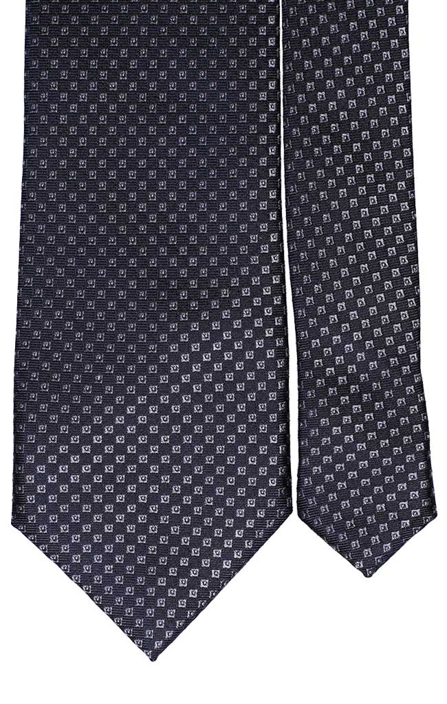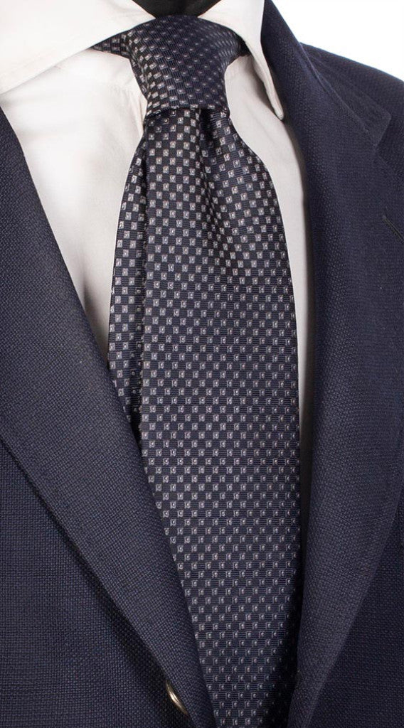 Cravatta da Cerimonia di Seta Blu Notte con Fantasia Grigia Bianca CY3160