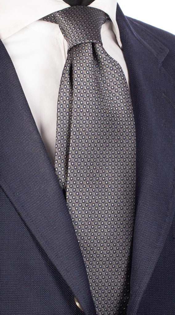 Cravatta da Cerimonia di Seta Grigia con Pois Blu Grigi CY3226