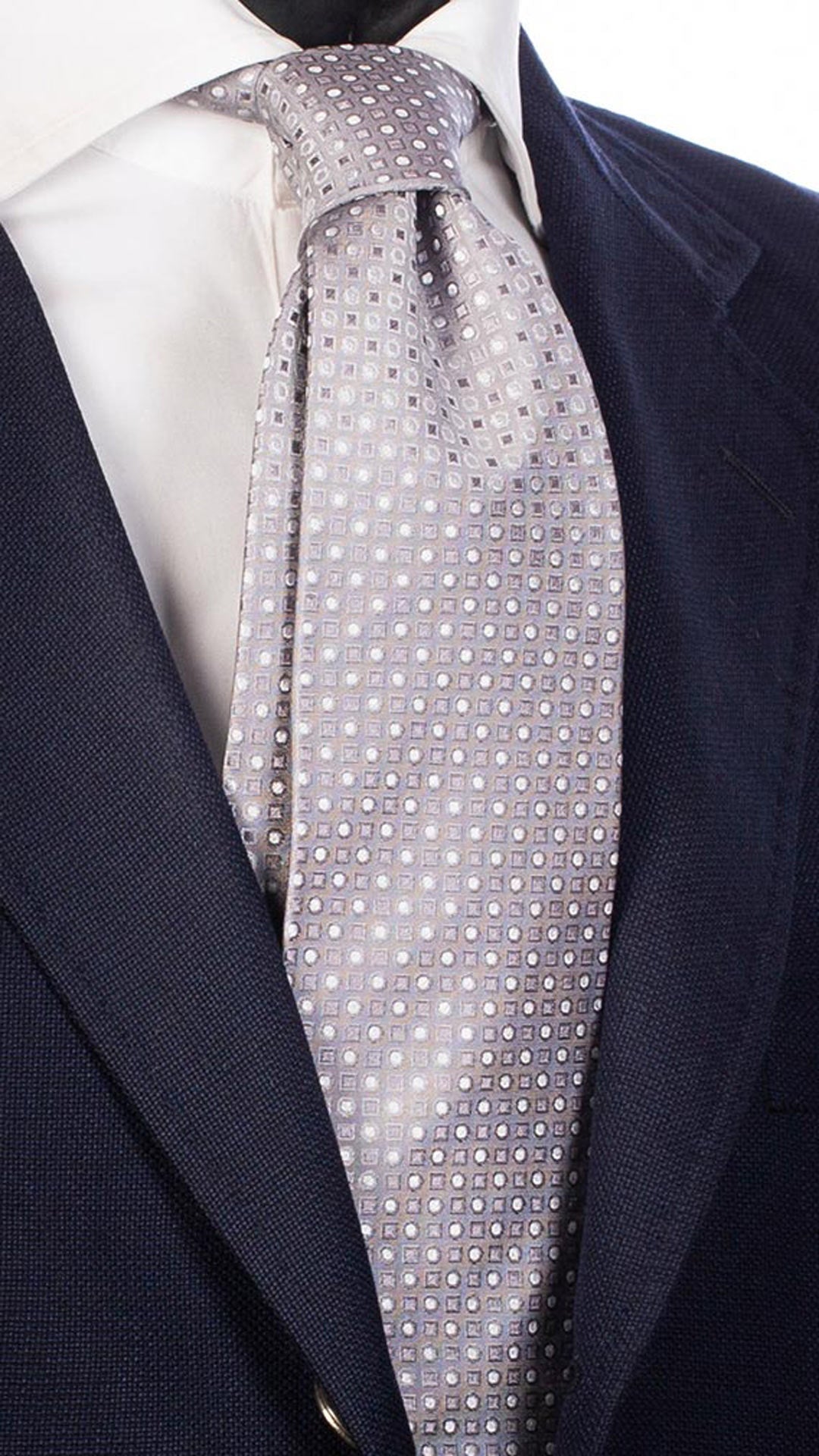 Cravatta da Cerimonia di Seta Grigia Fantasia Tono su Tono Bianco Cangiante CY4724