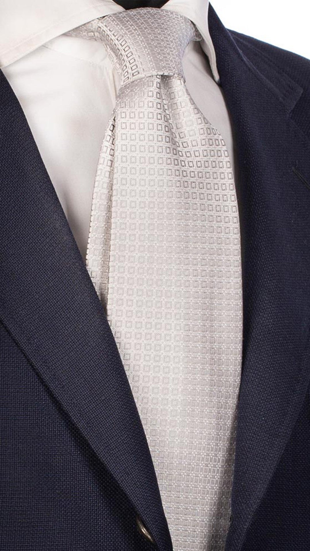Cravatta da Cerimonia di Seta Grigio Argento Fantasia Tono su Tono CY5076