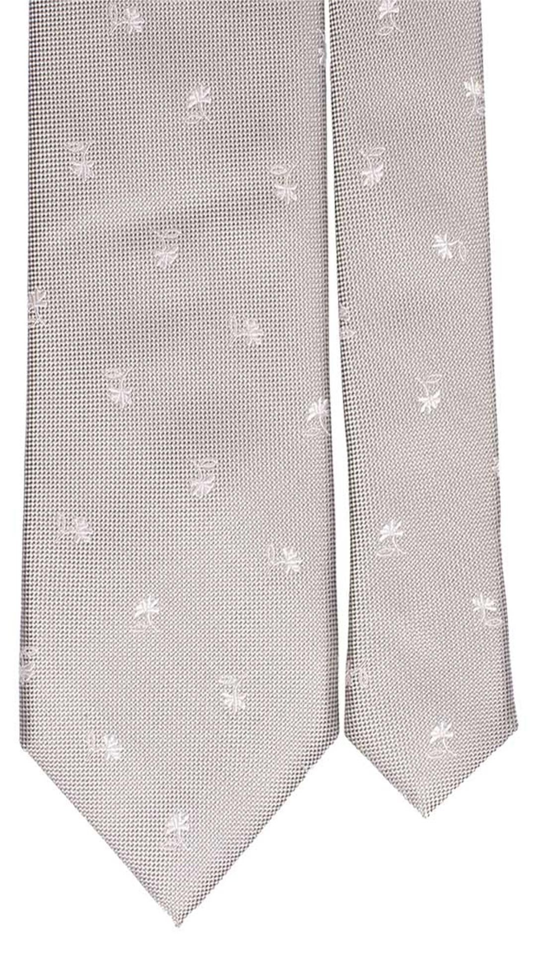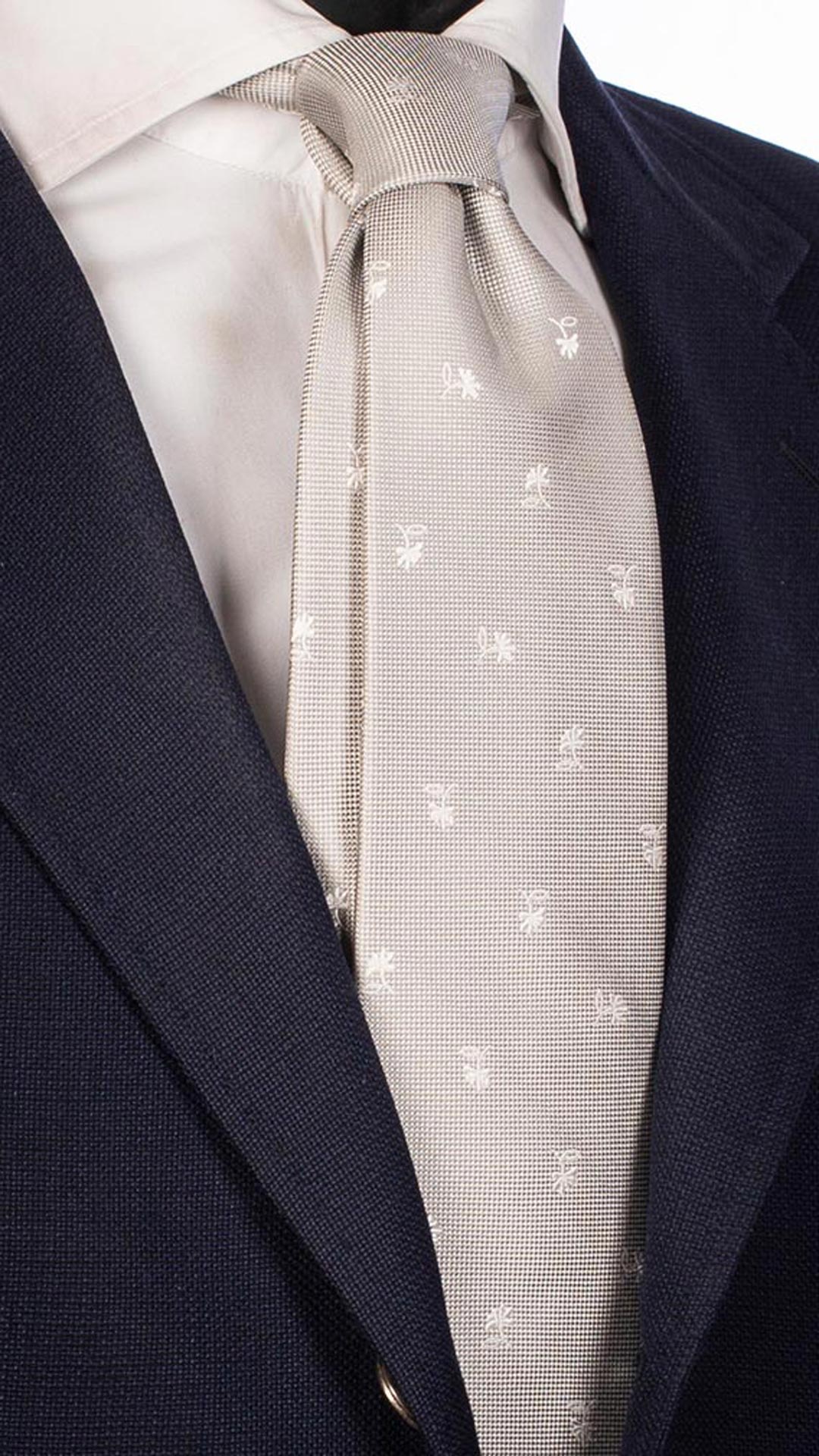 Cravatta da Cerimonia di Seta Grigio Chiaro Fantasia Floreale Bianca CY2701