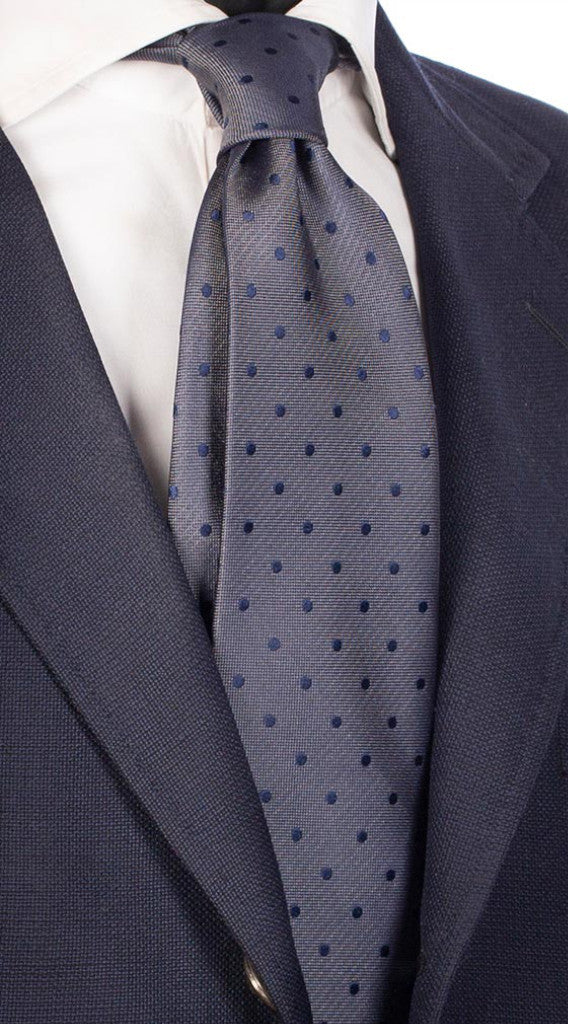 Cravatta da Cerimonia di Seta Grigio Scuro Pois Blu CY3140