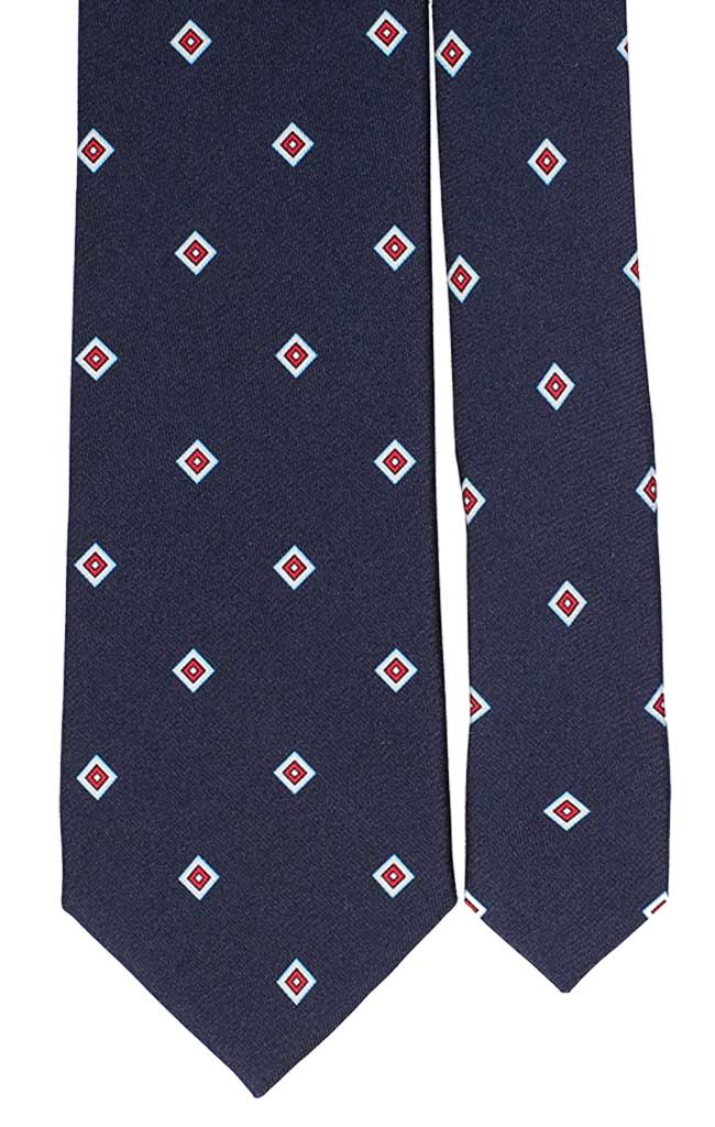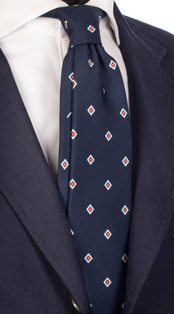 Cravatta Uomo Stampa di Seta Blu Con Fantasia Bianca Rossa AN165