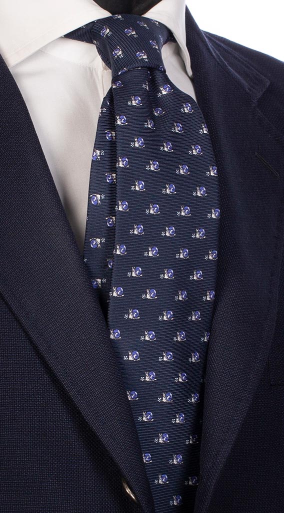 Cravatta Uomo Stampa di Seta Blu con Animali 1325