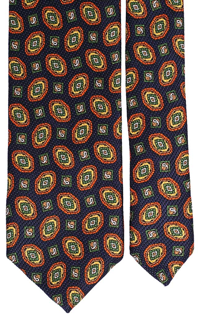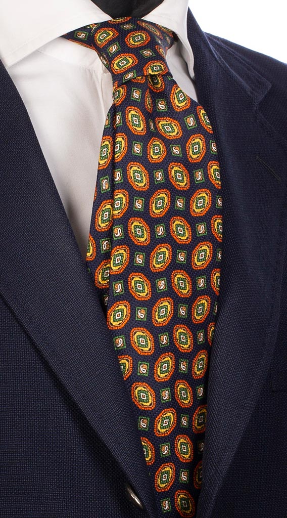 Cravatta Uomo Stampa di Seta Blu Fantasia Gialla Arancio Verde Bianca 1352
