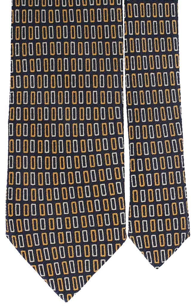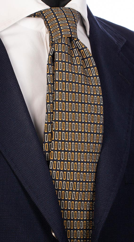 Cravatta Uomo Stampa di Seta Blu Notte Fantasia Giallo Beige 4830