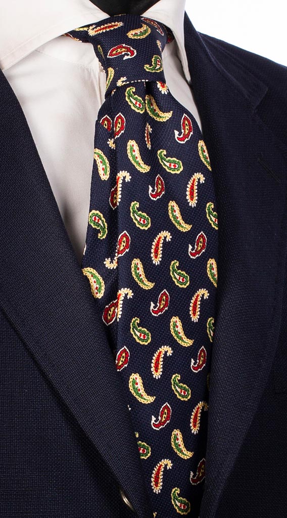 Cravatta Uomo Stampa di Seta Blu Paisley Rosso Verde Giallo 1343