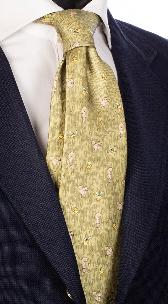 Cravatta Uomo Stampa di Seta Verde con Animali 4816