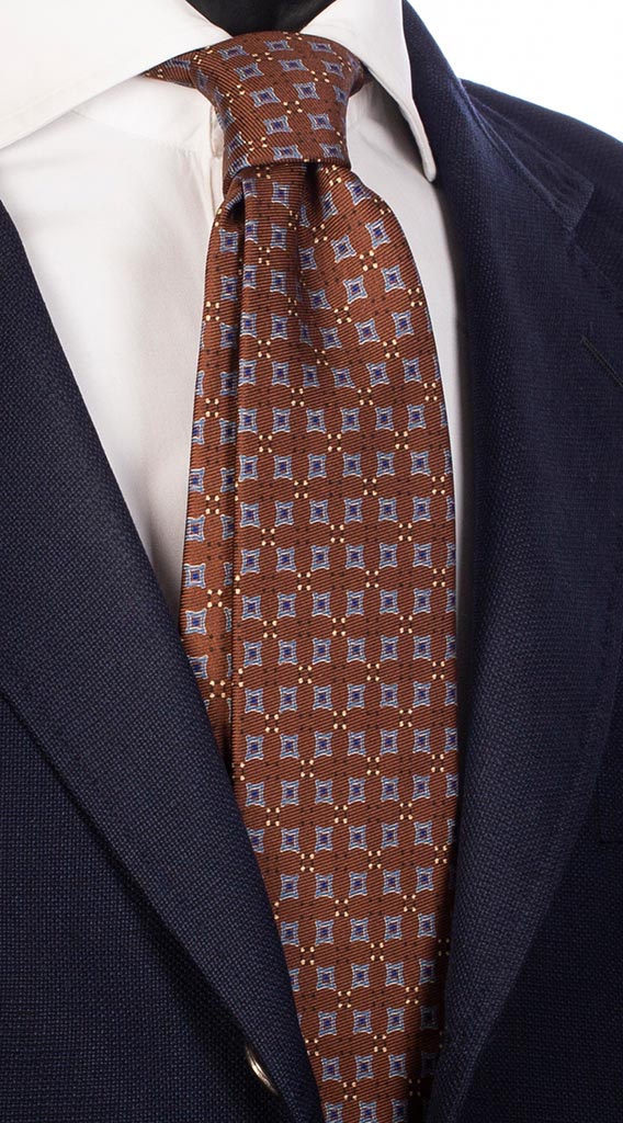 Cravatta Uomo Stampa di Seta Marrone Fantasia Bluette Beige Blu Avio AN4579