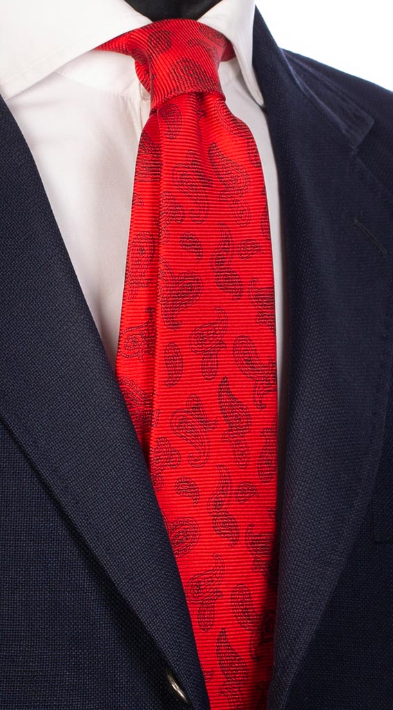Cravatta Uomo Stampa di Seta Rossa Paisley Nero 3944