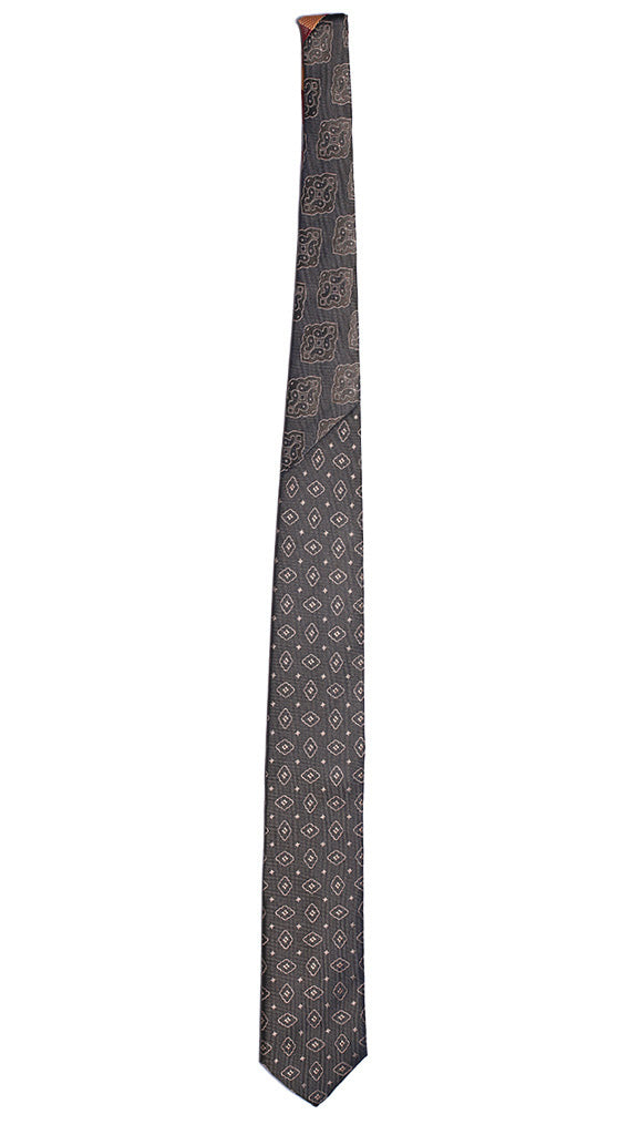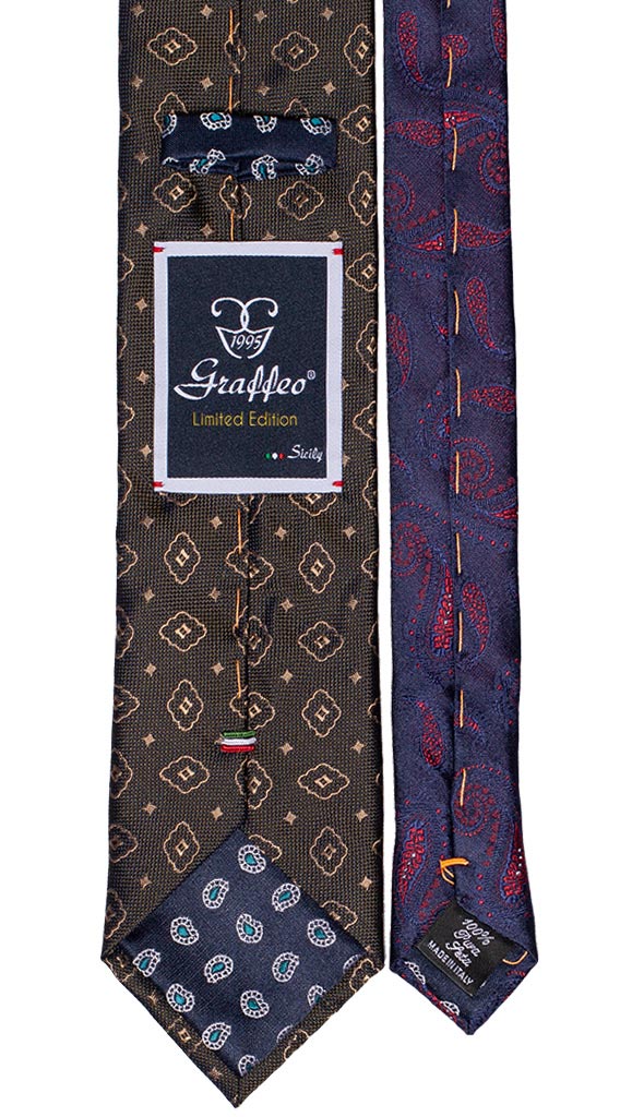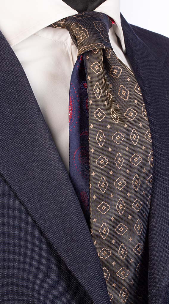 Cravatta Verde Oliva Fantasia Beige Nodo in Contrasto Verde Oliva Medaglioni Beige N1251