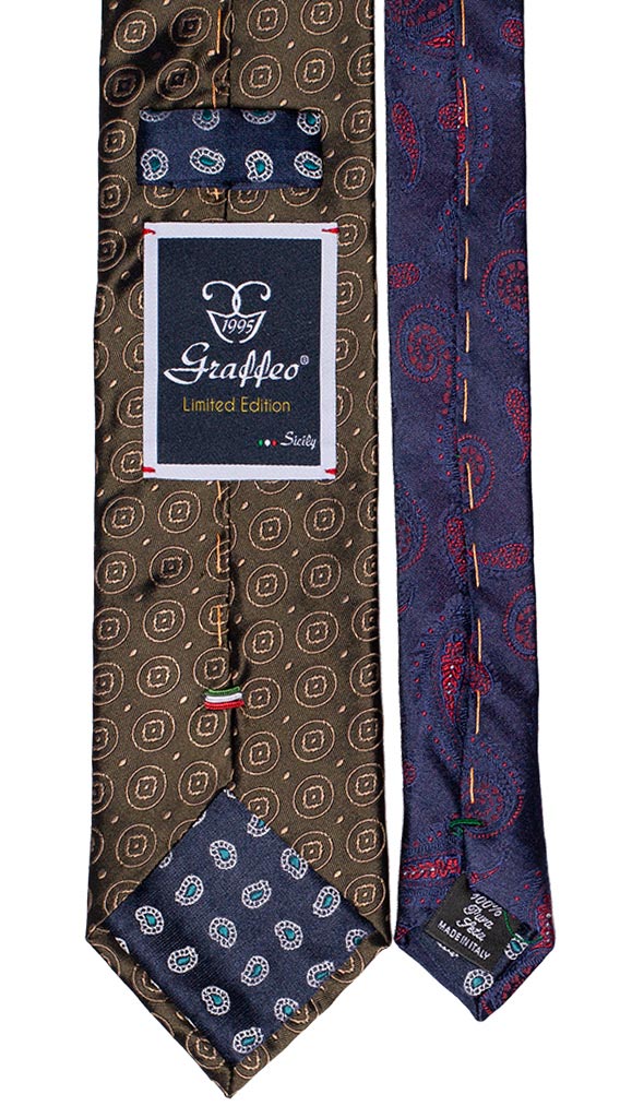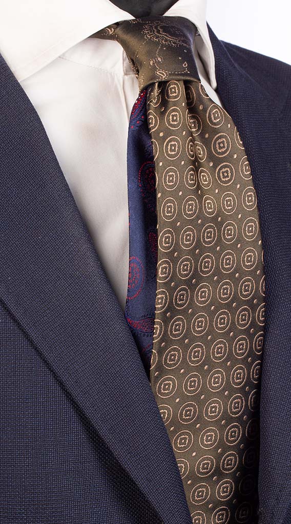 Cravatta Verde Oliva Fantasia Beige Nodo In Contrasto Verde Oliva Fantasia Beige N1237