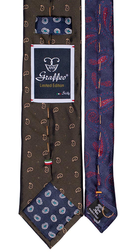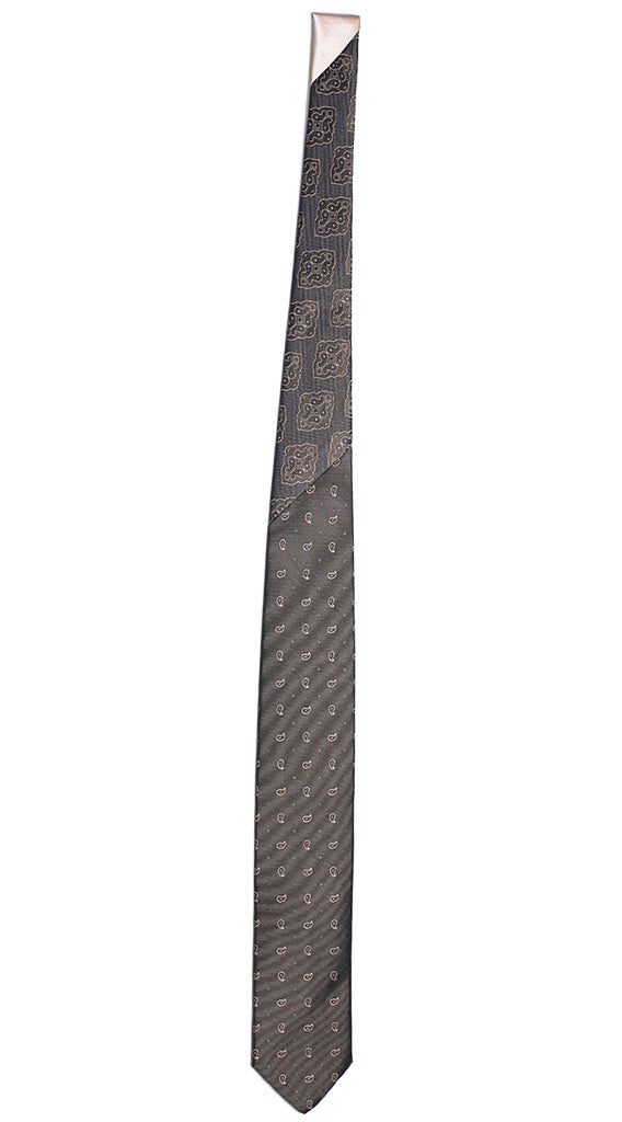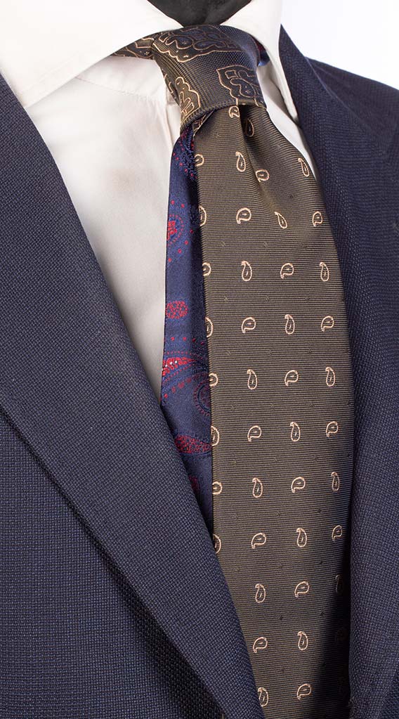 Cravatta Verde Oliva Paisley Beige Nodo In Contrasto Medaglioni Beige N1260