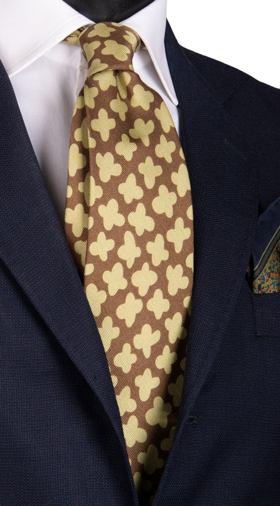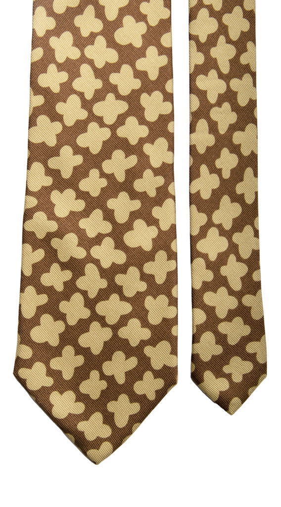 Cravatta Vintage in Saia di Seta Marrone Fantasia Verde Sabbia CV627