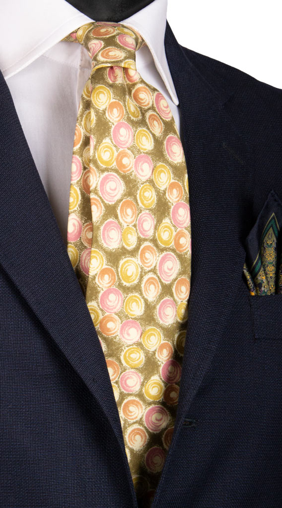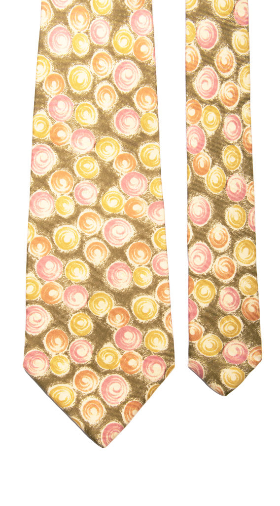 Cravatta Vintage in Twill di Seta Verde Fantasia Senape Beige Rosa CV708