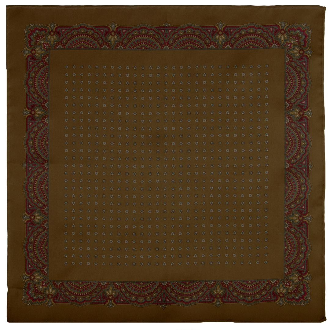 Fazzoletto da Taschino di Seta Marrone Fantasia Beige Verde Rossa POC518