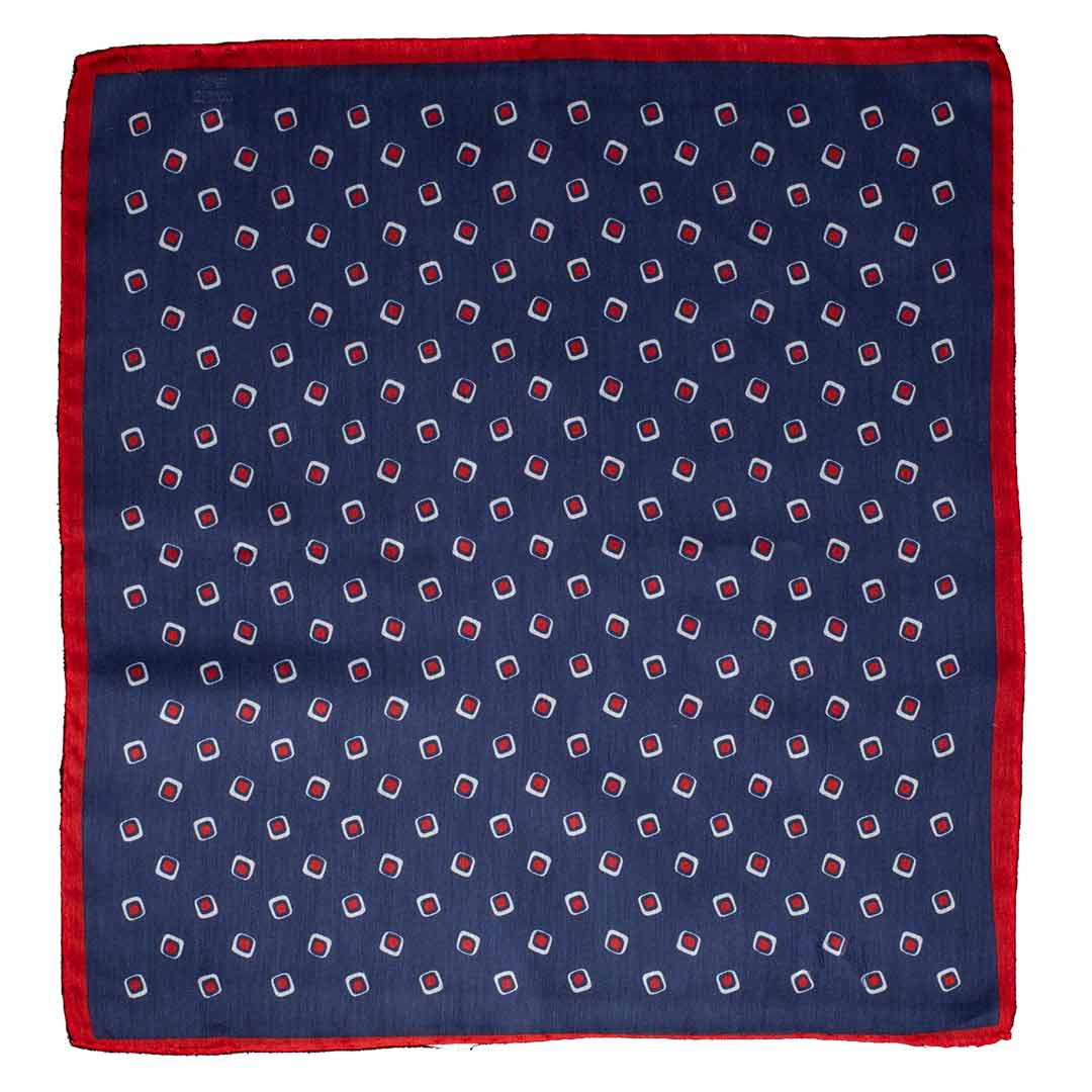 Fazzoletto da Taschino in Seta Cotone Blu Fantasia Bianca Rossa POC250