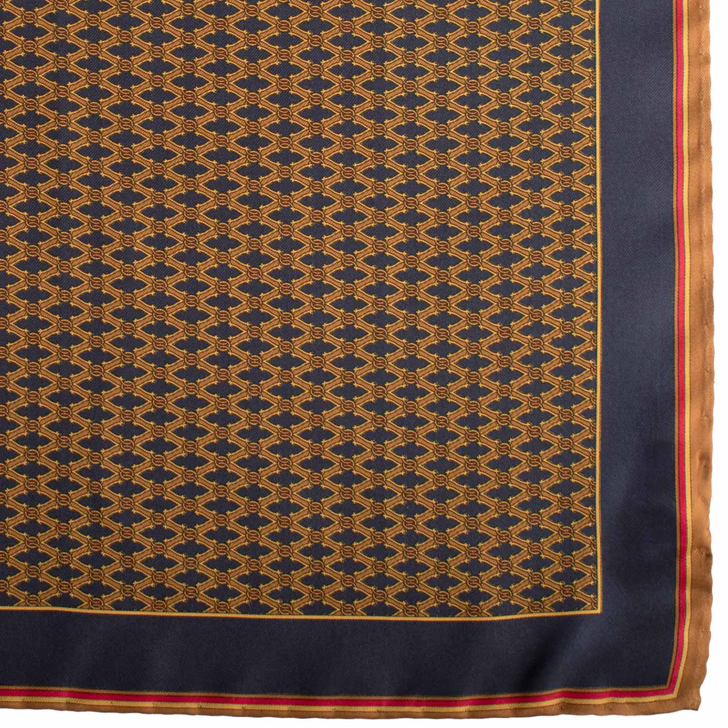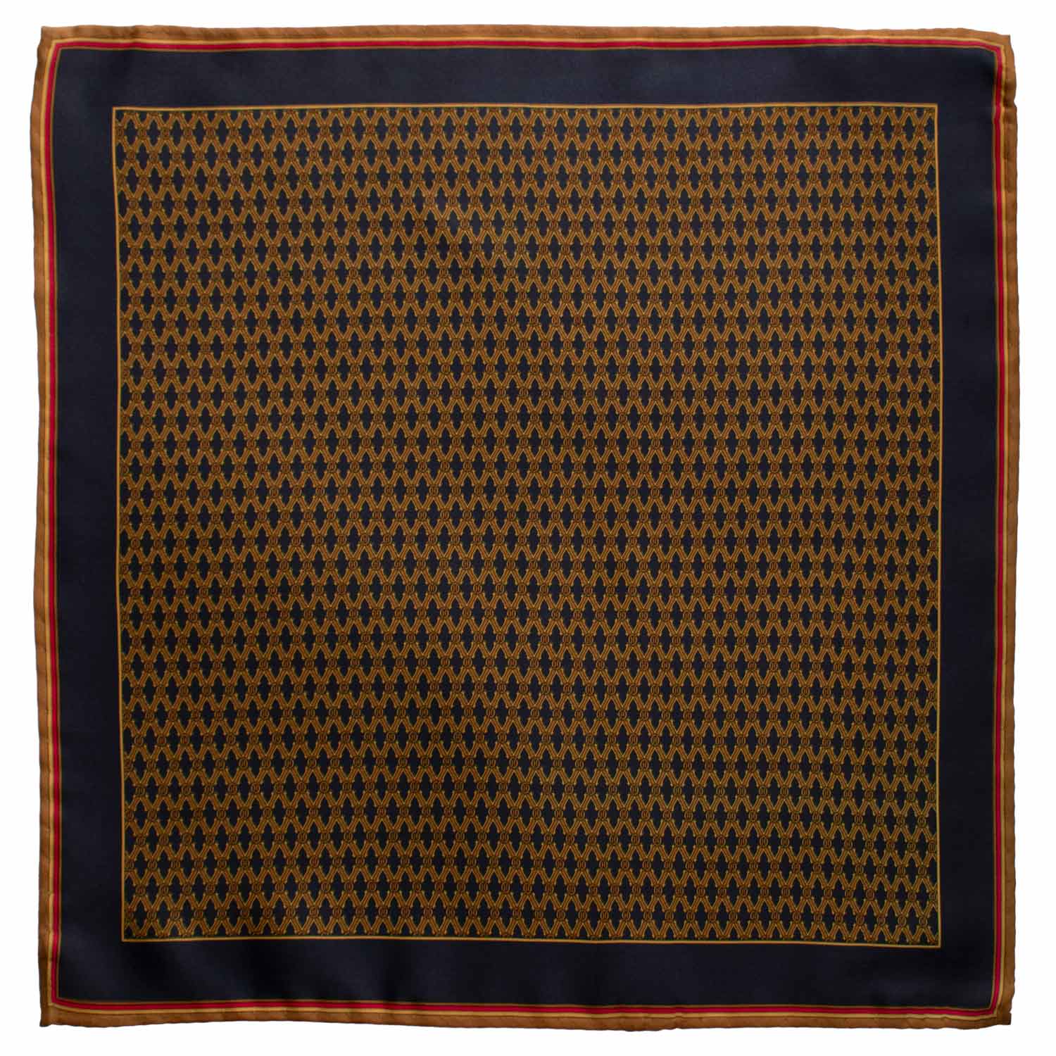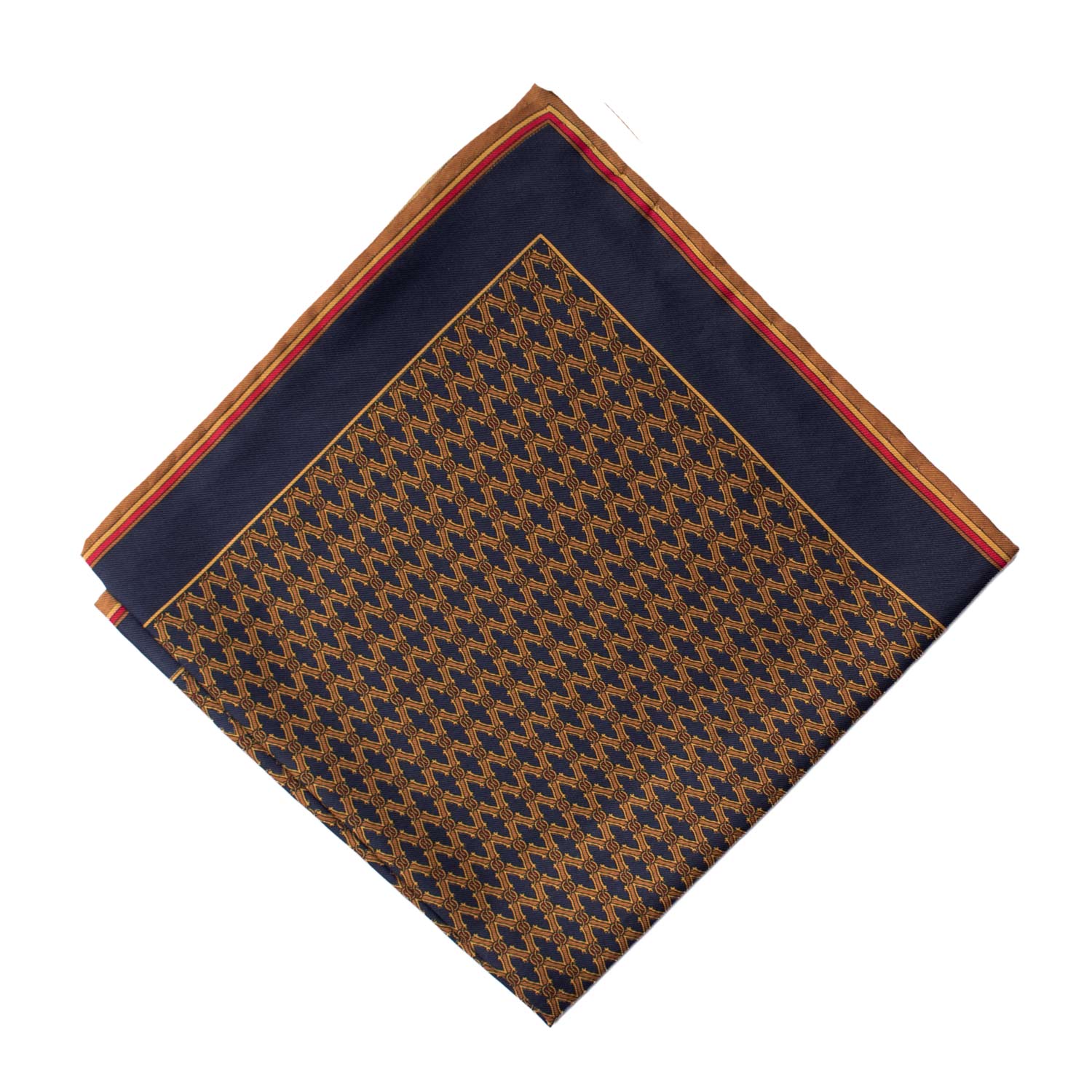 Fazzoletto da Taschino Vintage di Seta Blu Fantasia Marrone Gialla Rossa POCV898