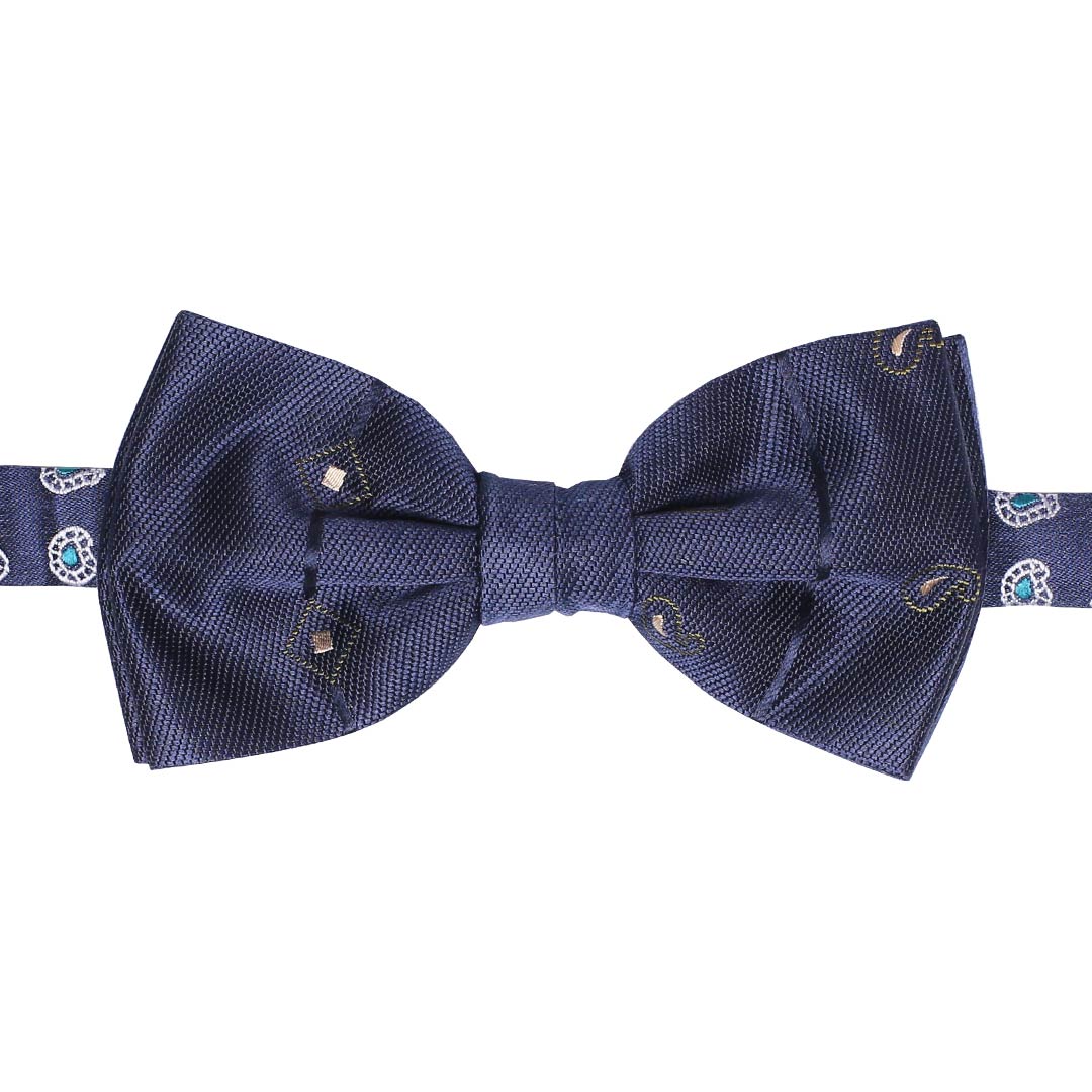 Papillon Annodato di Seta Blu con Fantasia Verde Giallo Chiaro Pap218