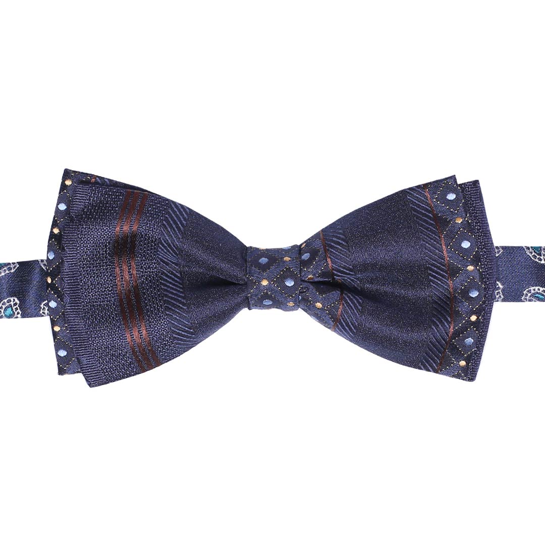 Papillon Annodato di Seta Blu Fantasia Marrone Celeste Beige PAP438