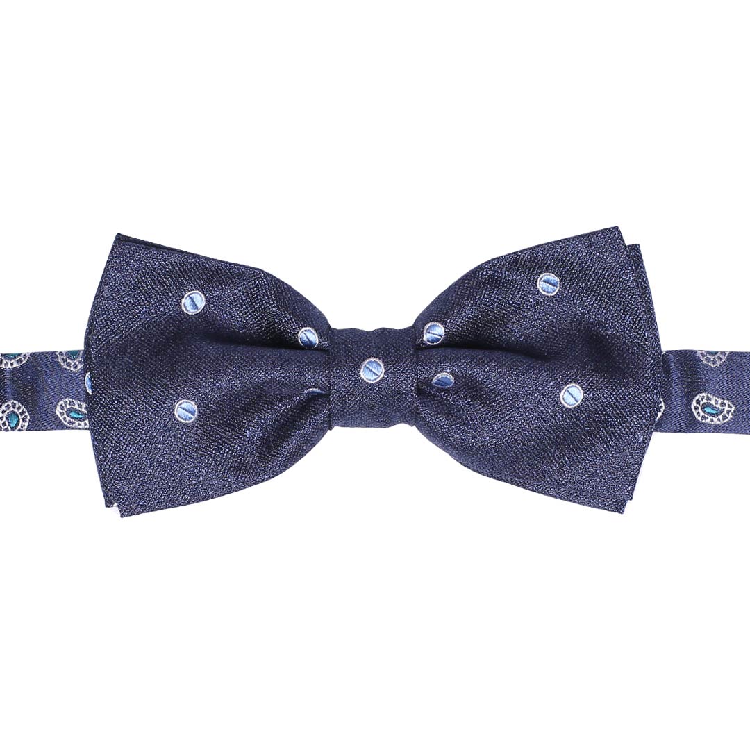 Papillon Annodato di Seta Blu Satinato Fantasia Celeste Bianca PAP283
