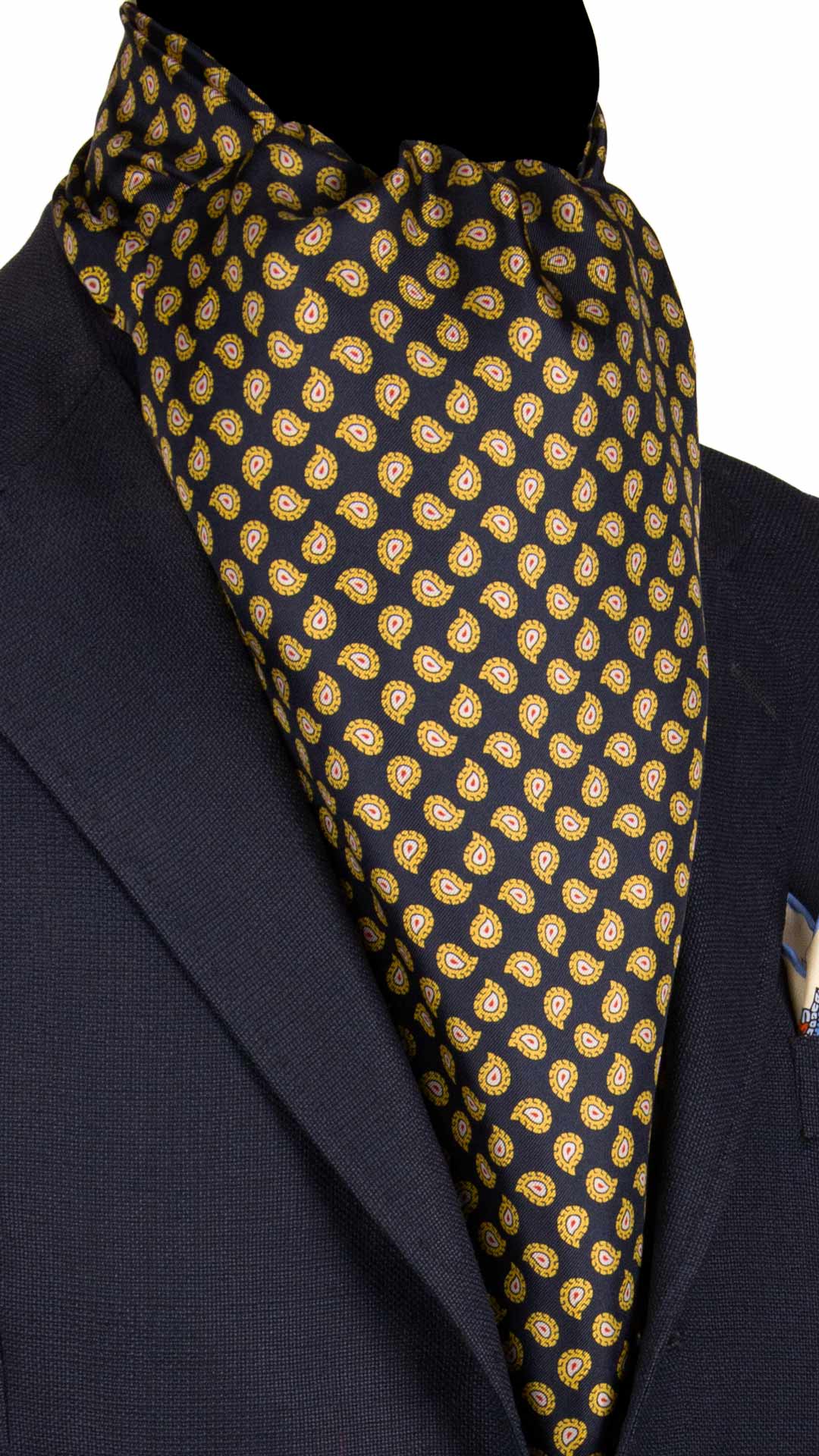 Sciarpa ad una Foglia di Seta Blu Paisley Giallo Bianco Rosso SF58