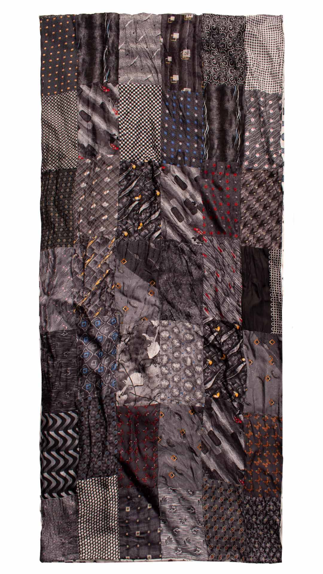Sciarpa di Seta Grigia Vintage Patchwork Fantasia Multicolor S526