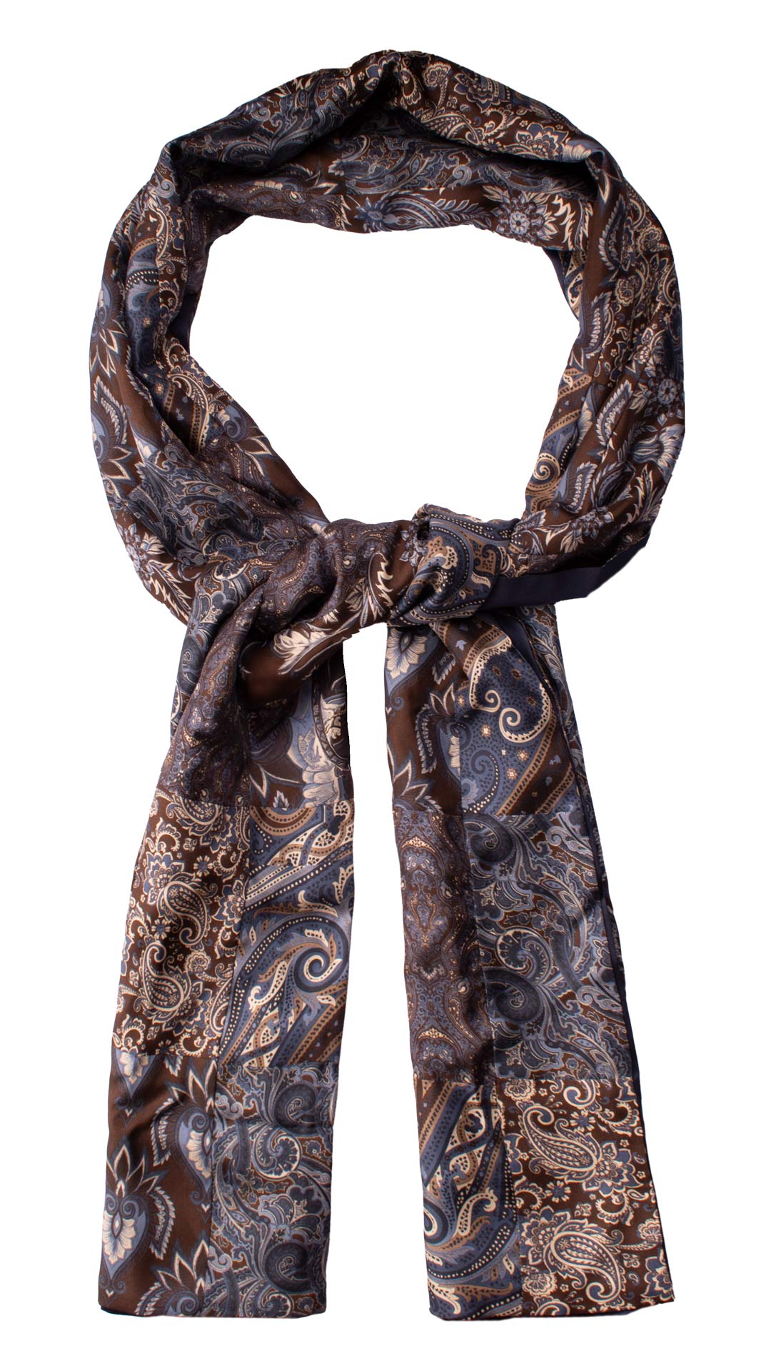 Sciarpa di Seta Marrone Vintage Patchwork Paisley Celeste Bianco S276